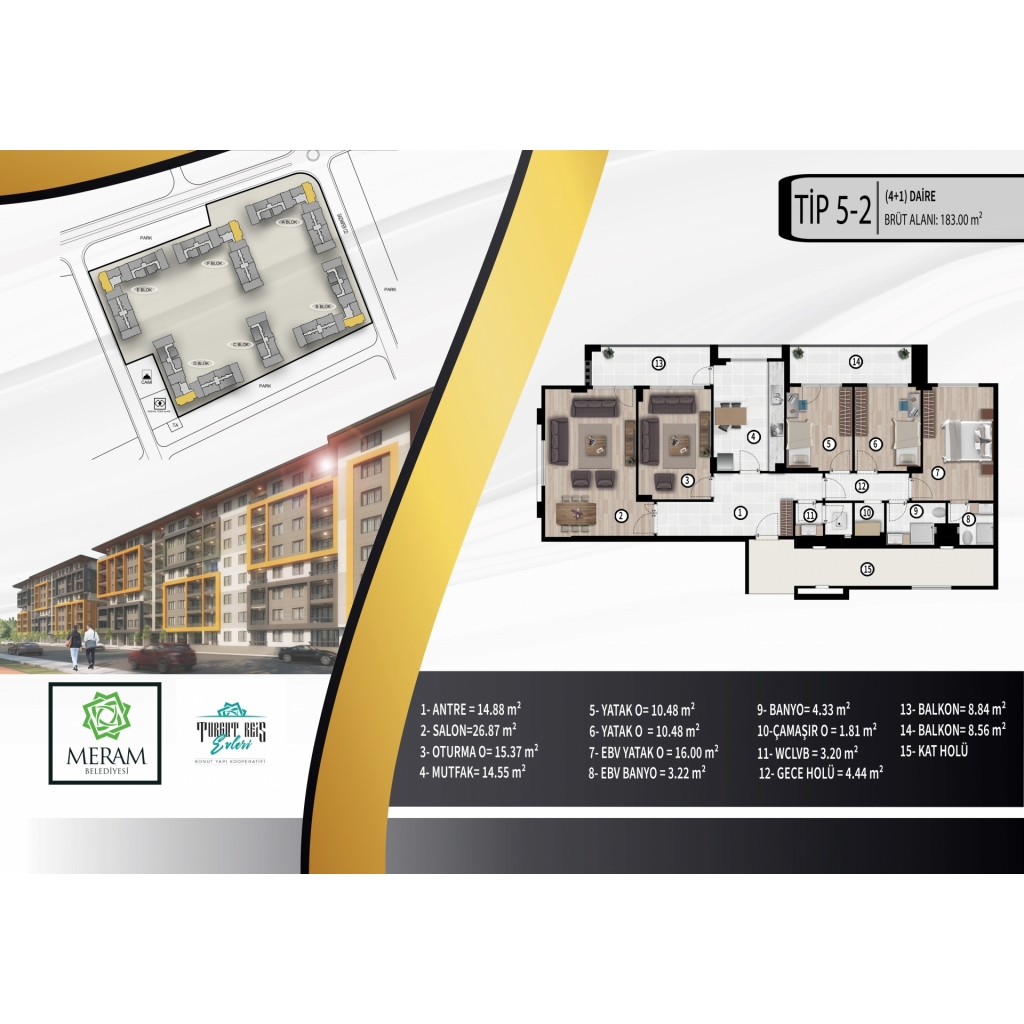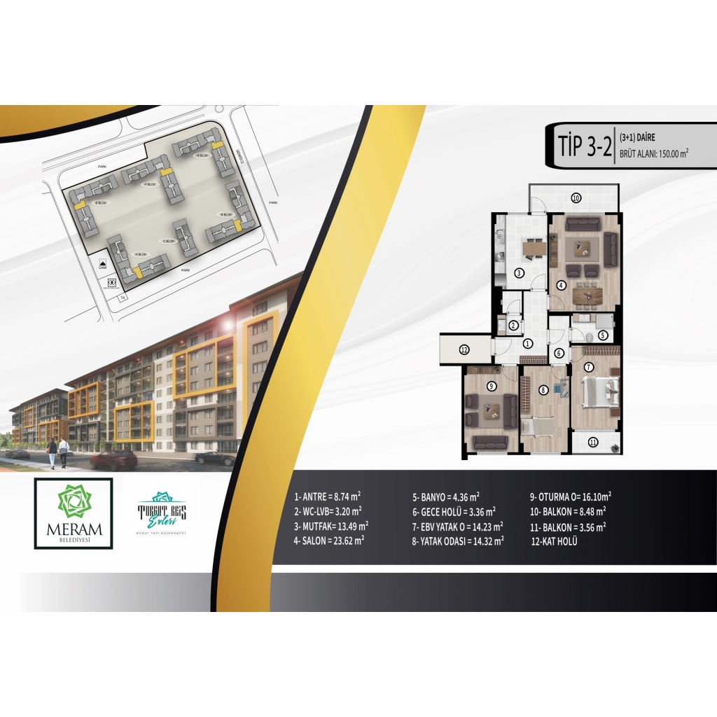 Turgutreis evleri, Meram Belediyesi öncülüğünde, şehrin kalbinde, Konya’nın parlayan yıldızı Aymanas Mahallesi sınırları içerisinde, Ahmet Özcan ve Karaman caddelerine yakın, ayrıcalıklı bir lokasyonda, tam donanımlı, modern, ferah ve estetik yaşam alanları sunmak için yükseliyor.